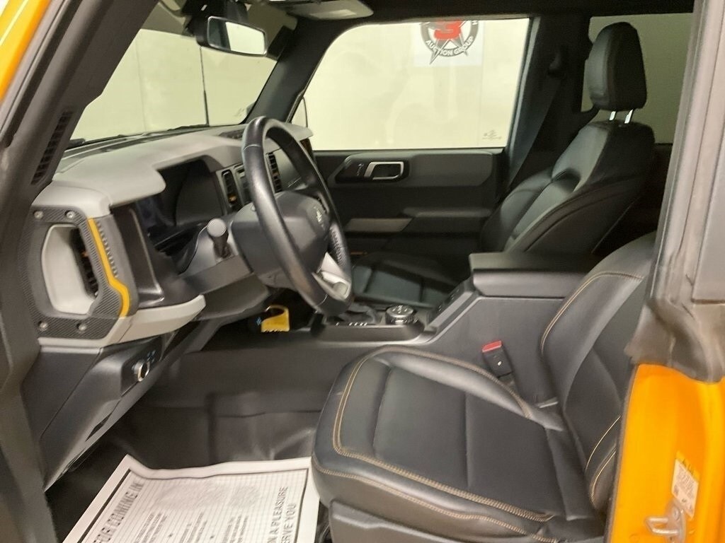 2022 Ford Bronco Badlands Bronco Badlands, 4D Sport Utility, 2.3L EcoBoost I-4, 10-Speed Automatic, 4WD, Cyber Orange Metallic Tricoat, Black Onyx Vinyl, 2-Door Intelligent Access w/Lock/Unlock, Air Conditioning, Alloy wheels, AM/FM radio: SiriusXM with 360L, Ambient Footwell Lighting, Auto High-Beam Headlamps, Auto-Dimming Interior Rear-View Mirror, Backup Camera, Connected Navigation, Dr & Pass Illuminated Sliding Visor Vanity Mirrors, Dual-Zone Electronic Automatic Temperature Control, Enhanced Voice Recognition, Equipment Group 332A Mid Package, Front Row Heated Seats, Fully automatic headlights, Lane-Keeping System, Panic alarm, Power Outlet - Back Side of Center Floor Console, Power windows, Rear Parking Sensors, Rear-View Camera, Remote keyless entry, Security system, Steering wheel mounted audio controls, Towing Capability. Badlands