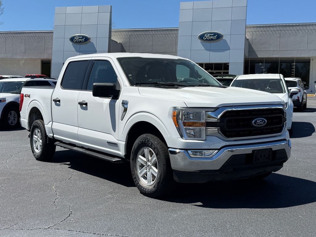 2022 Ford F-150 XLT F-150 XLT, 4D SuperCrew, 3.5L PowerBoost Full-Hybrid V6, 10-Speed Automatic, 4WD, Oxford White, 6 Speakers, 8-Way Power Driver's Seat w/Power Lumbar, 8" Productivity Screen in Instrument Cluster, Air Conditioning, Alloy wheels, AM/FM radio, Auto High-beam Headlights, Auto-Dimming Rear-View Mirror, Backup Camera, Black Platform Running Boards, Class IV Trailer Hitch Receiver, Dual Zone Electronic Automatic Temperature Control, Equipment Group 301A Mid, Front fog lights, Fully automatic headlights, Leather-Wrapped Steering Wheel, Power windows, Radio: AM/FM Stereo w/6 Speakers, Rear Under-Seat Storage, Rear window defroster, Remote keyless entry, SecuriCode Drivers Side Keyless-Entry Keypad, Steering wheel mounted audio controls, SYNC 4, SYNC 4 w/Enhanced Voice Recognition. CARFAX One-Owner. XLT