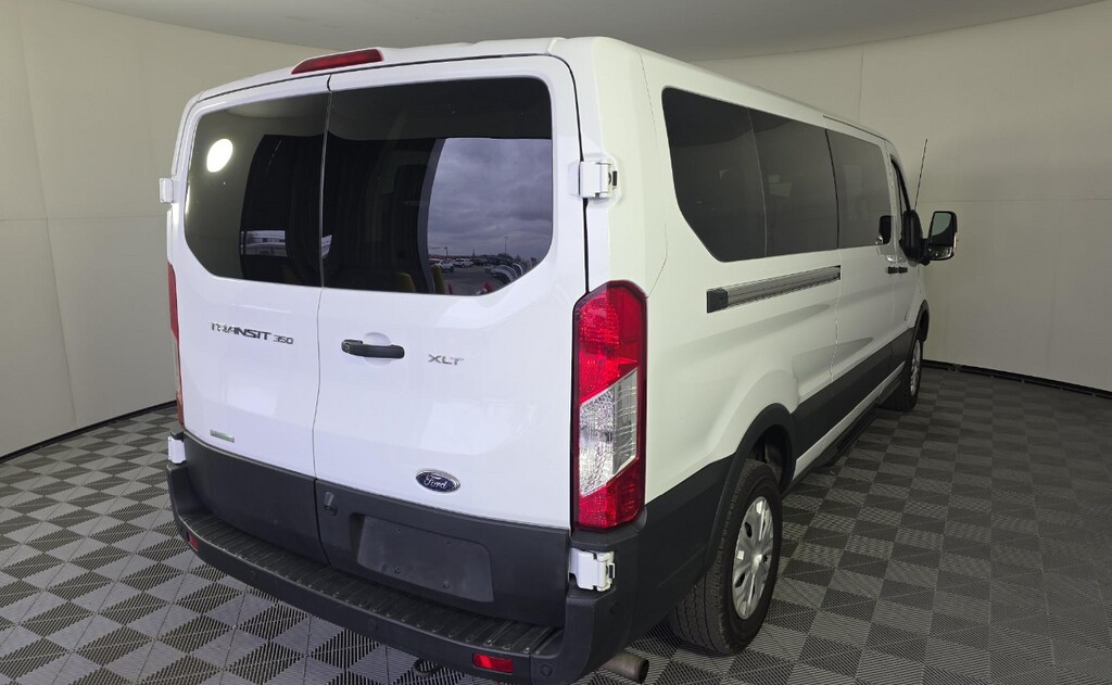 2023 Ford Transit-350 XLT Transit-350 XLT, Passenger Van, EcoBoost 3.5L V6 GTDi DOHC 24V Twin Turbocharged, 10-Speed Automatic with Overdrive, RWD, Oxford White, Gray Cloth, 360-Degree Camera w/Split View, 8 Speakers, Air Conditioning, Automatic temperature control, Front Fog Lamps, Fully automatic headlights, Honeycomb Mesh Grille w/Chrome Surround, Navigation system: Connected Navigation, Order Code 302A, Panic alarm, Power windows, Rear air conditioning, Rear window defroster, Remote keyless entry, Reverse Sensing System, Speed control. CARFAX One-Owner. Clean CARFAX. Odometer is 664 miles below market average! XLT