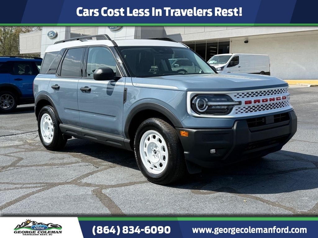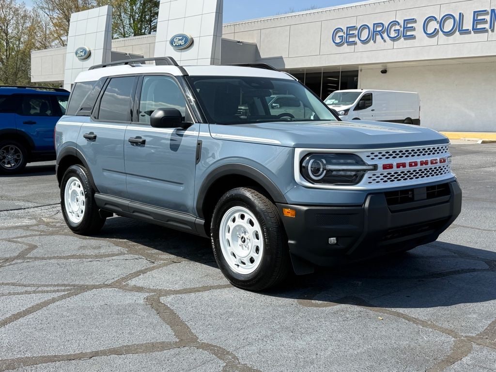 2025 Ford Bronco Sport Heritage Bronco Sport Heritage, 4D Sport Utility, 1.5L EcoBoost, 4WD, Azure Gray Metallic, Navy Pier Cloth, Air Conditioning, Alloy wheels, AM/FM radio: SiriusXM, Auto High-beam Headlights, Automatic temperature control, Convenience Package, Delay-off headlights, Equipment Group 250A, Front Driver/Passenger Seat Back Map Pockets, Fully automatic headlights, Heated 8-Way Power Driver's Seat, LED Fog Lamps, Power Moonroof, Power windows, Premium Wrapped Steering Wheel, Rear Parking Sensors, Rear window defroster, Remote keyless entry, Steering wheel mounted audio controls, SYNC 4 w/Enhanced Voice Recognition, Universal Garage Door Opener (UGDO). CARFAX One-Owner. Clean CARFAX. Heritage 25/30 City/Highway MPG