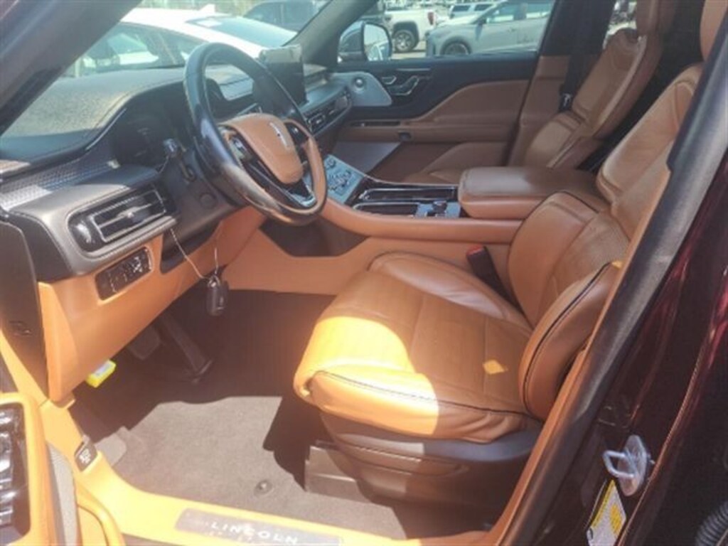 2022 Lincoln Aviator Black Label Aviator Black Label, 4D Sport Utility, 3.0L V6, 10-Speed Automatic, AWD, Burgundy, Tan Leather, 28 Speakers, Adaptive Suspension w/Road Preview, Air Glide Suspension w/Dynamic Lower Entry, Auto High-beam Headlights, Automatic temperature control, Dynamic Handling Package, Equipment Group 800A, Front dual zone A/C, Front fog lights, Fully automatic headlights, Head restraints memory, Heads-Up Display, HVAC memory, Memory seat, Navigation System, Power driver seat, Power Liftgate, Power moonroof: Panoramic Vista Roof, Power windows, Radio: Revel Ultima 3D Audio System w/28 Speakers, Rear air conditioning, Rear dual zone A/C, Remote keyless entry, Security system, SiriusXM Radio, Steering wheel memory, Steering wheel mounted A/C controls, SYNC 3 Communication & Entertainment System, Wheels: 22" Bright-Machined Aluminum. CARFAX One-Owner. Black Label