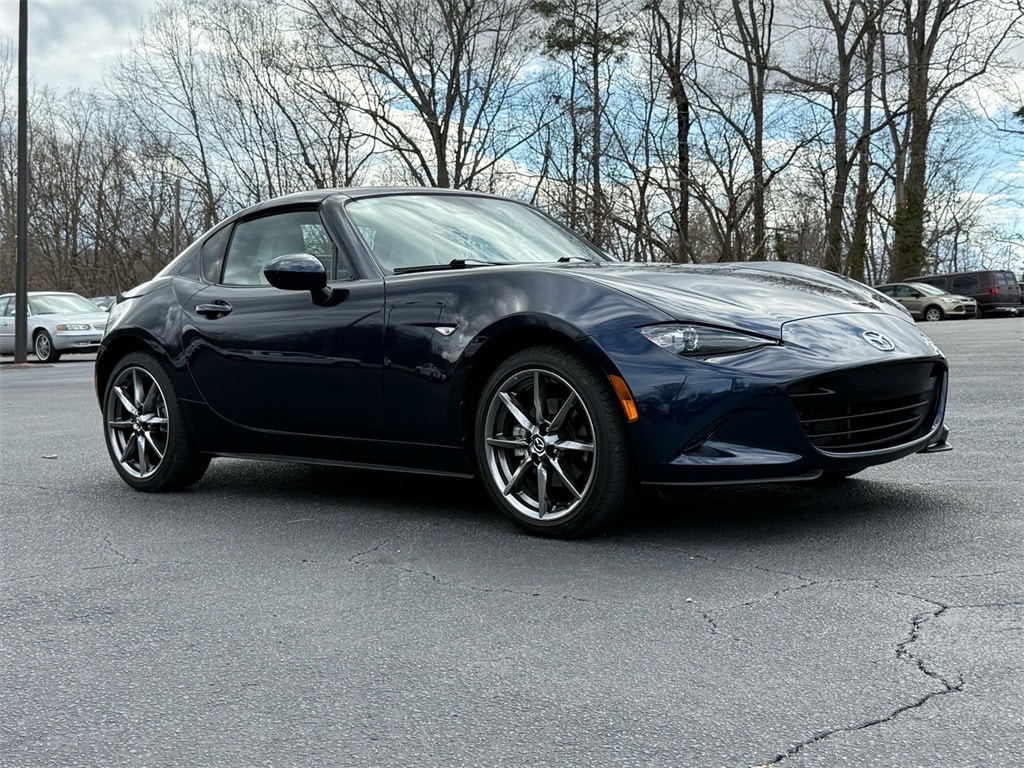 2021 Mazda Miata RF Grand Touring ** LEATHER **, ** NAVIGATION (NAVI/GPS) **, ** Apple CarPlay **, ** CLEAN CARFAX **, ** BLUETOOTH **, Miata RF Grand Touring, 2D Convertible, 2.0L 4-Cylinder DOHC 16V, 6-Speed Manual, RWD, Deep Crystal Blue Mica, White Leather, ** AppLink/Apple CarPlay and Android Auto **, 4-Wheel Disc Brakes, ABS brakes, Air Conditioning, Auto High-beam Headlights, Automatic temperature control, Backup Camera, Brake assist, Convertible HardTop, Dual front impact airbags, Dual front side impact airbags, Electronic Stability Control, Four wheel independent suspension, Front Bucket Seats, Fully automatic headlights, Glass rear window, Heated door mirrors, Heated front seats, Leather Shift Knob, MAZDA CONNECT Infotainment System, Nappa Leather Upholstery, Navigation System, Occupant sensing airbag, Panic alarm, Power convertible roof, Power door mirrors, Power steering, Power windows, Radio: Bose Audio System w/AudioPilot, Rear window defroster, Remote keyless entry, Speed control, Speed-sensing steering, Sport steering wheel, Steering wheel mounted audio controls, Tilt steering wheel, Traction control, Variably intermittent wipers, White Nappa Leather. Clean CARFAX. Odometer is 9643 miles below market average! Grand Touring 26/34 City/Highway MPG